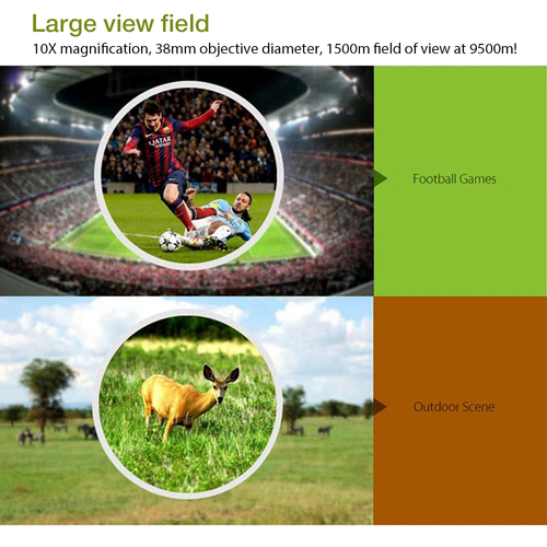 Large view field: 10X magnification, 38mm objective diameter, 1500m field of view at 9500m!