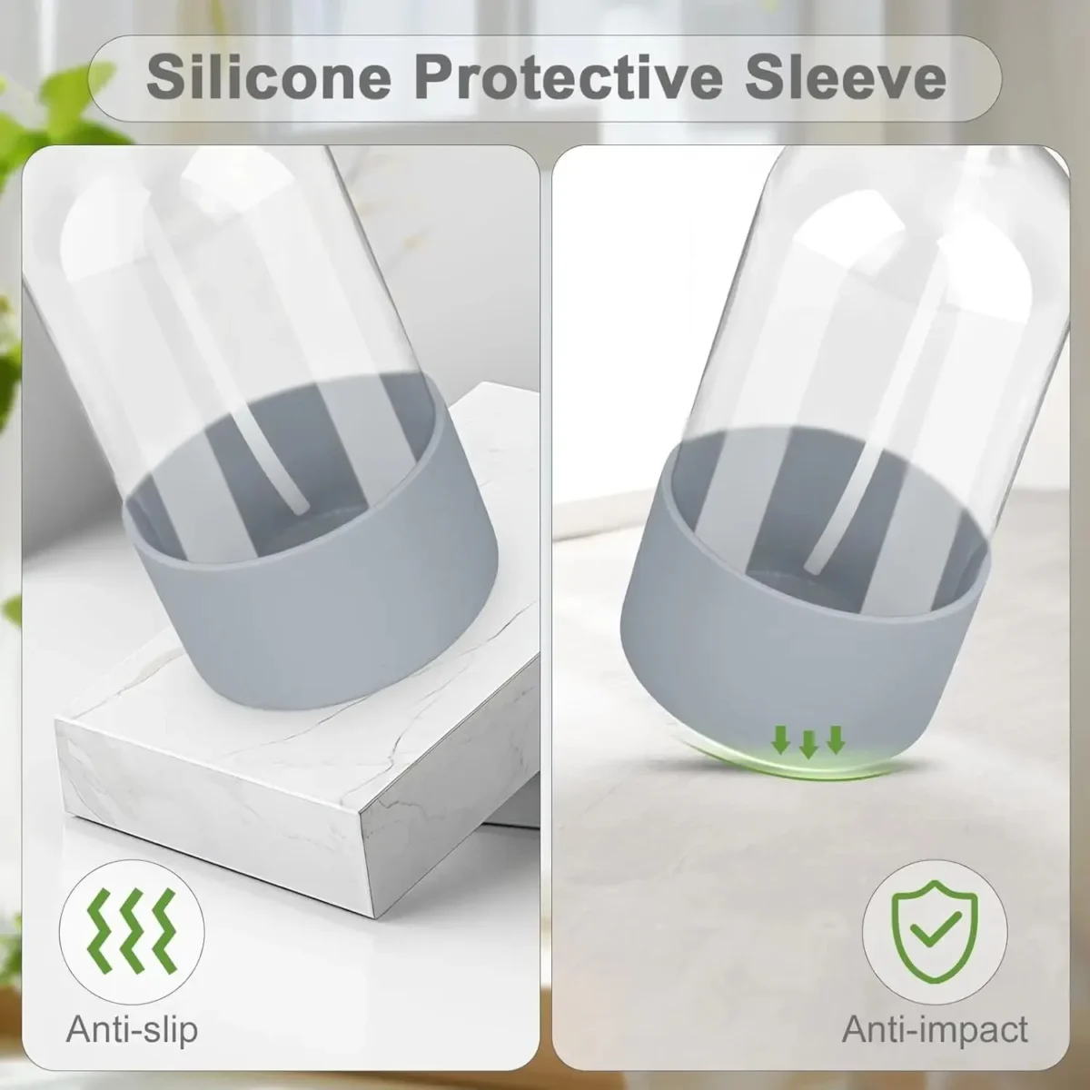 Premium Glass & Sturdy Silicone Sleeve: Crafted from high-transparency glass, our bottle offers a clear view of liquid levels, ensuring effortless monitoring and usage. The included silicone sleeve ensures minimizing the risk of breakage and slips, making it safe for daily use.