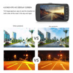 Simply mount it to windshield, connect the power cable, the car camcorder will automatically record whilst driving. Ultra clear 4.0″ IPS display for ease of instant playback and menu selection.