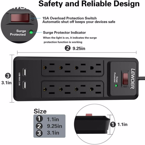 8 AC Outlets and 2 USB Charging Ports Power Strip