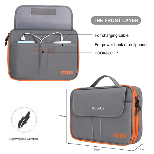 2 Front Pockets+2 Layer Storage: Larger capacity,2 Front Pockets(power bank & mobile phone),convenient forphone charging. Morebags and elastic bands for better storage,neatly storing data lines and headphone cables.Built-in zippered mesh pocket for ipad.
