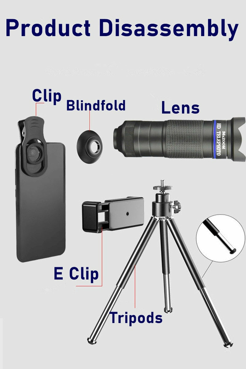 This extendable 36X high-power mobile phone lens has dual focus adjustable for the objective and eyepiece, not only easily adjust the focus of the lens by rotating the focus ring to bring those long distance scenes into clear images without any dark, it also can work as a monocular telescope too.