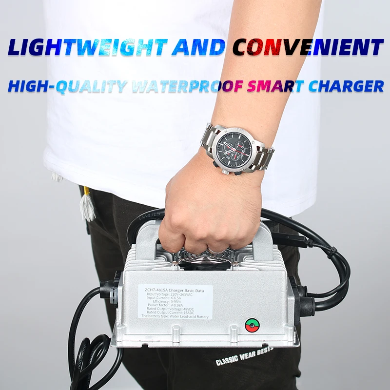 IP67 Waterproof Smart 48V 15A Charger 110VAC For Club EZGO YAMAHA Golf Car 13s 14S 54.75v 58.4V 15A Lithium MNC Battery Pack