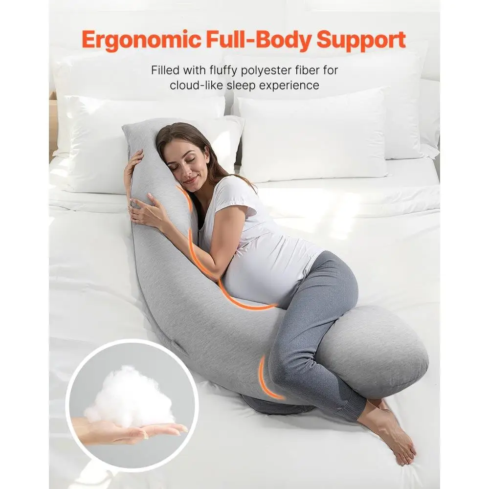 Ultimate Comfort: Indulge in cloud-like softness and fluffy support with our maternity pillow, filled with ≥1630g of premium polyester fiber for a plush, luxurious feel. And the breathable, skin-friendly jersey cotton cover provides a soft, gentle touch, cradling your body for deep relaxation.