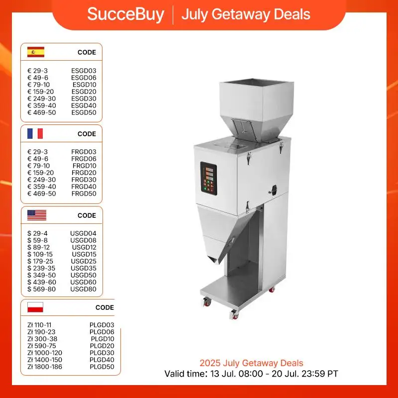 SucceBuy 10-999g Particle Filling Machine Automatic Powder Weighing Filler with Foot Pedal for Beans Seeds Tea Granular Packing