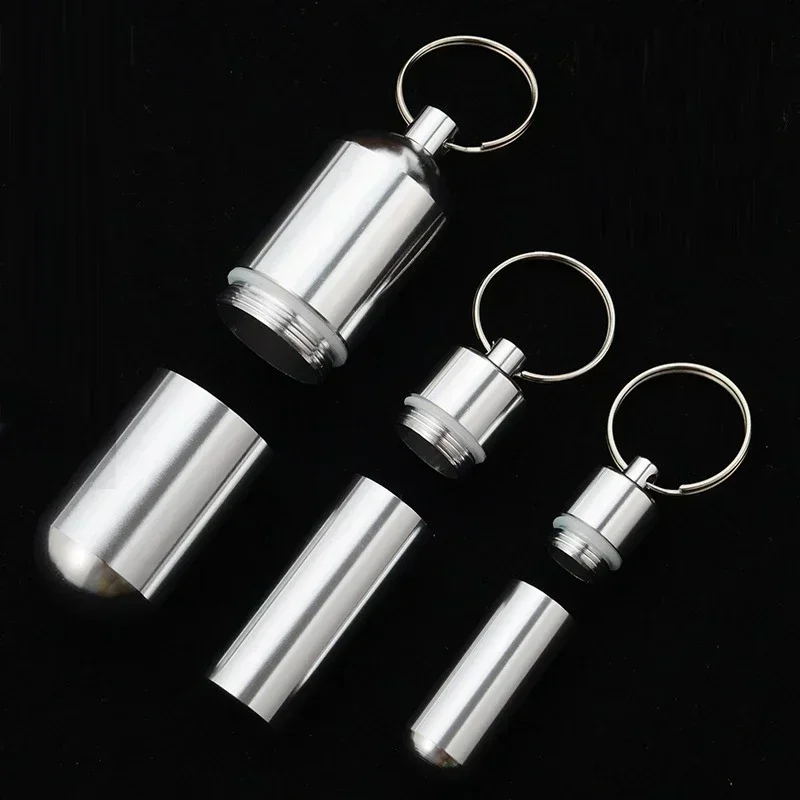 Waterproof Aluminum Pill Box Case Bottle Cache Drug Holder for Traveling Camping Container Keychain Medicine Box Health Care